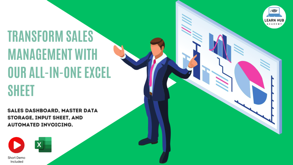 Our all-in-one Excel spreadsheet revolutionizes sales management by providing a powerful sales dashboard, a master data storage for products, an easy-to-use input sheet for sales tracking, and an automated invoice system. With customizable theme colors, seamless data input, and streamlined invoicing, businesses can maximize sales, optimize productivity, and make data-driven decisions to drive sustainable growth. In addition, we offer a short demo that provides a comprehensive overview of our spreadsheet solution.