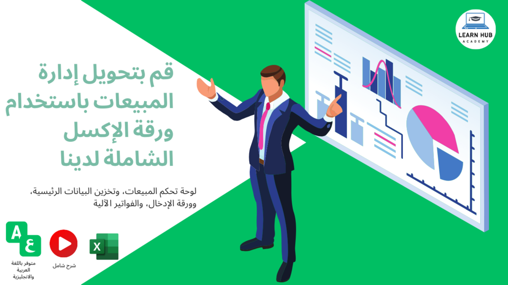 ستحصل على حلاً شاملاً لإدارة المبيعات مع ورقة الإكسل لدينا. اكتشف قوة لوحة المبيعات الديناميكية، وكفاءة تخزين البيانات الرئيسية للمنتجات، وسلاسة تتبع المبيعات من خلال ورقة الإدخال، والفوترة الآلية. تحكم في عملية المبيعات الخاصة بك، وحسّن الإنتاجية، واستفد من إمكانات نمو عملك